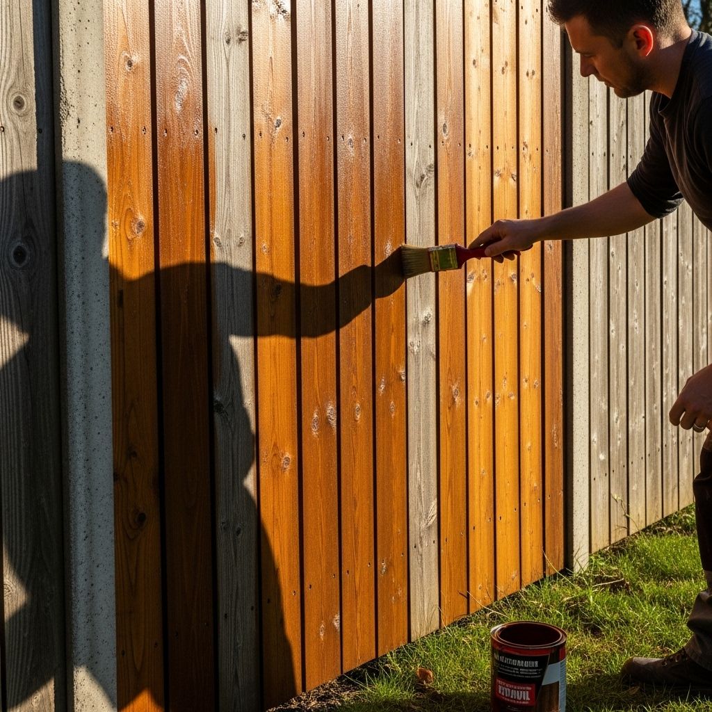 Apply Sealant or Stain: Apply a sealant or stain to protect wood fences from moisture and UV damage.